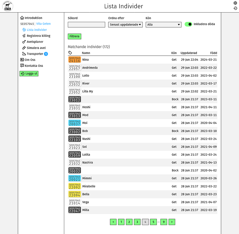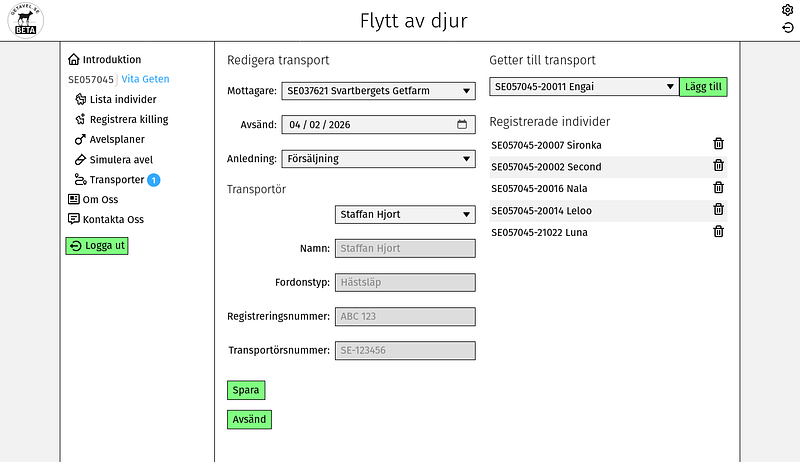 Denna applikation hanterar avel- och stambokföring för getter. Applikationen lanserades 2025 och utvecklas hela tiden med nya funktioner. Vi tar gärna emot era synpunkter och önskemål.